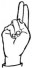 На ћирилици написано САВЕТА МИЛУНОВИЋ састоји се из 15 слова [?]. Исписано ћириличном једноручном азбуком за глувонеме: